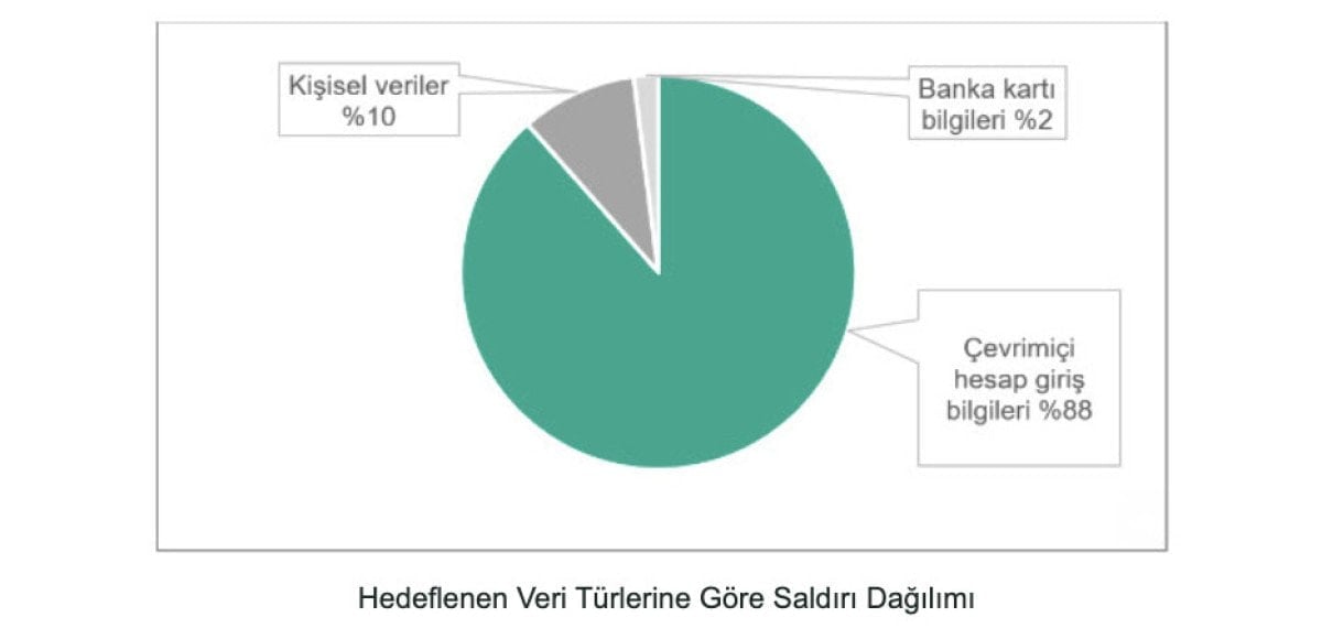 Saldırıların yüzde 9,5’i ise isim, adres ve doğum tarihi gibi kişisel verileri hedeflerken, yüzde 2’si banka kartı bilgilerini amaçladı.