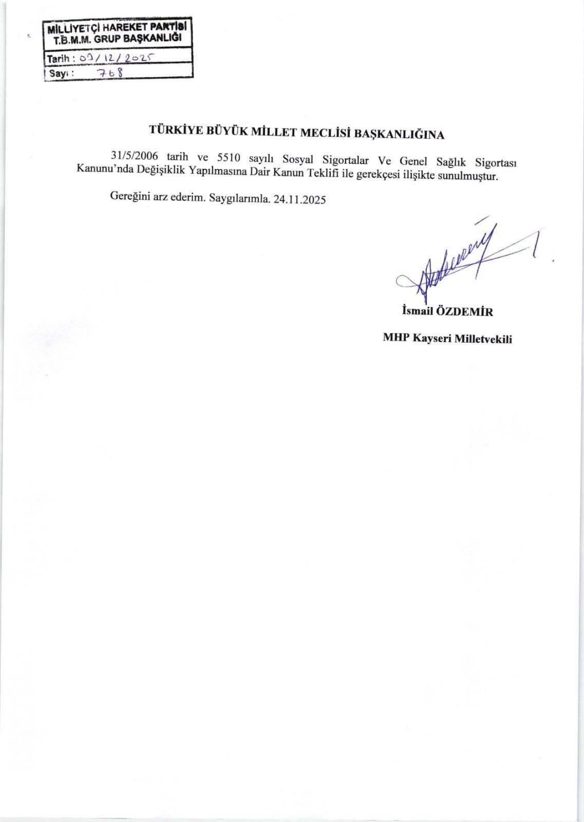 MHP Genel Başkan Yardımcısı ve Kayseri Milletvekili İsmail Özdemir‘in sunduğu teklifle yerli üretim olmak şartı ile ve 4 adetten fazla olmamak üzere implant tedavilerinin SSK kapsamına alınması önerildi.